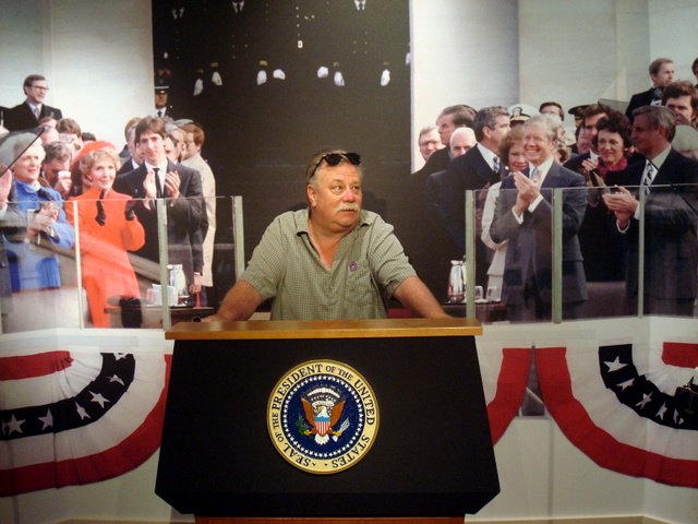 This photo was taken after we exited the rear of the airplane. They let you take photos everywhere except inside Air Force One, you just can't use your flash when taking photos.